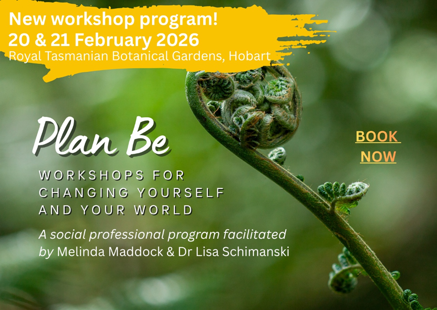 Plan Be is a two day gentle, deep dive workshop program that helps you find the green shoots of positive change and plant seeds of your own. Through facilitated conversations with Melinda Maddock and Dr Lisa Schimanski, mindfulness practices and activities, you will get a fresh perspective and gain insights into your own power and potential.